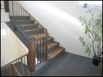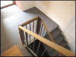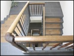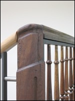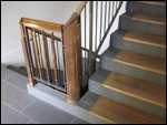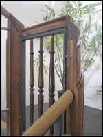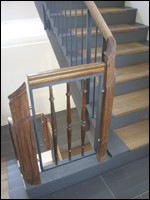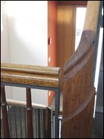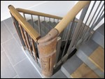 7 Ein neues metallenes Geländerelement mit alten Holzteilen im Treppenauge
