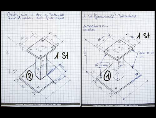 Zum definieren der Fusspunkte für die Balkonstützen hat der Zimmermann auf