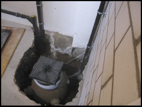 Der Pumpenschacht ist versetzt und angeschlossen: