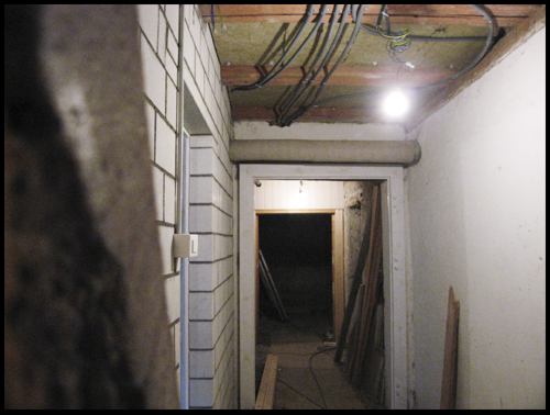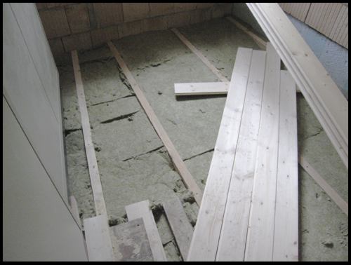 Im Zwischenbau wird der Boden gedämmt und ergänzt: