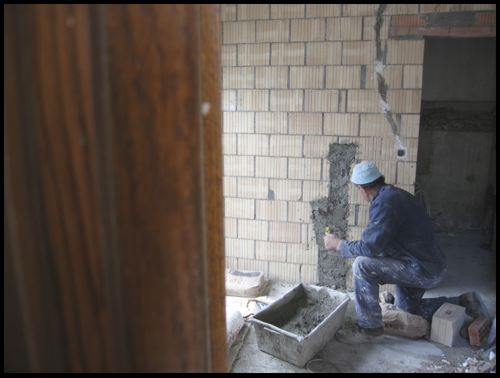 Im EG Zuputzen und Zumauern der Installationsschlitze im Personalraum:
