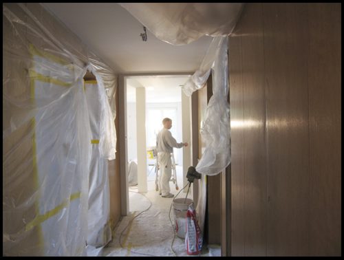 Im 1.OG hat der Maler mit der Arbeit begonnen: