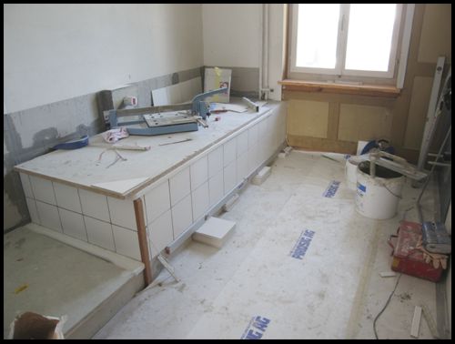 ...und auf der Badewannenverkleidung. Zuvor hat Joe Wettach ein