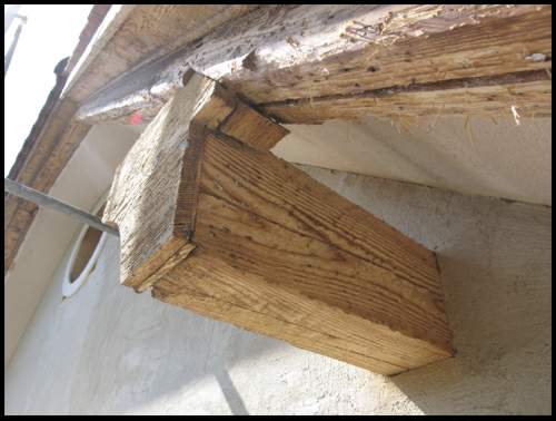 Aussen wird das Holzwerk im Dachbereich mit Eisstrahlen vom alten Anstrich