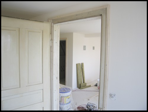 Im Zimmer im 2.OG ist eine der alten Türen wieder angeschlagen:
