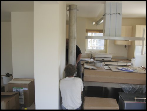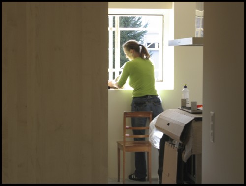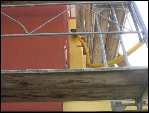 Draussen werden die Arbeiten am Deckputz abgeschlossen: