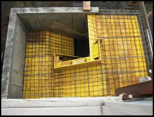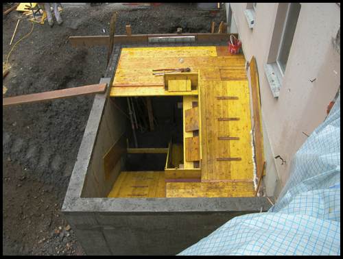 Am Treppenfuss ist schwarz die eingelegte Foamglasdämmung erkennbar: