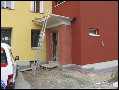 Der Hauseingang, noch etwas roh und ungestrichen: