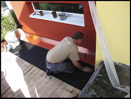 Das neu Gesichte der Südfassade, noch ohne das Geländer im 2. OG