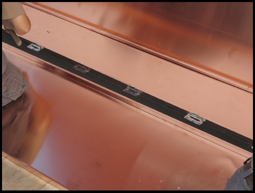 Die einzelnen Bahnen werden zusammengeschoben und mit einem Stehfalz