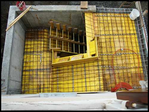 Zusätzliche Armierung an der rechten Seite des Podestes: