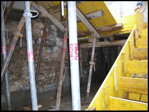...und ein seitliches Auflager im bestehenden Fundament auf der linken Seite: