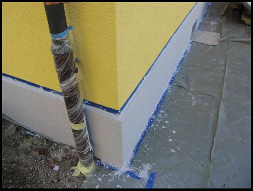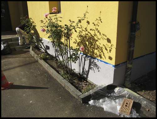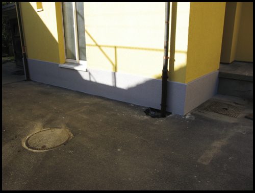 Die Sockelrohre der Dachwasserabläufe sind montiert: