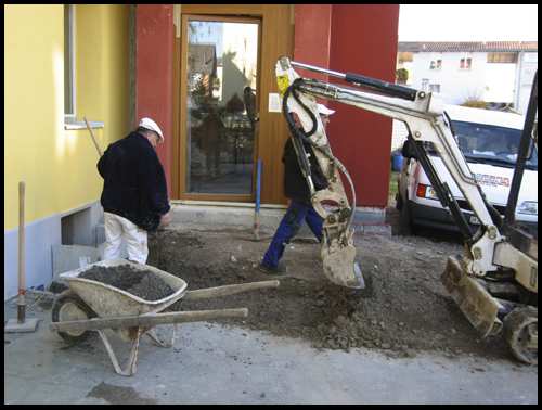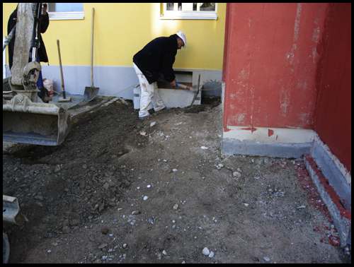 Vorbereiten des Untergrundes für die Eingangstreppe: