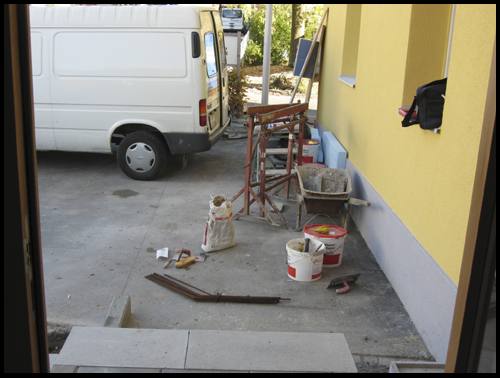 Vorbereiten der Bordsteine als Trennschwelle zwischen Hauszugang und