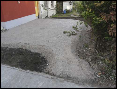 Der Veloparkplatz ist mit Netstalerkies eingekiest worden. Die Böschungen