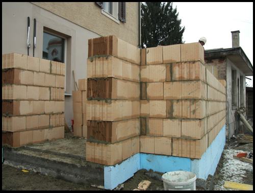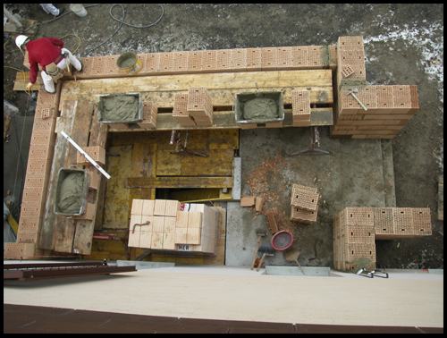 Die Mauern wachsen, ein Bockgerüst ist gestellt:
