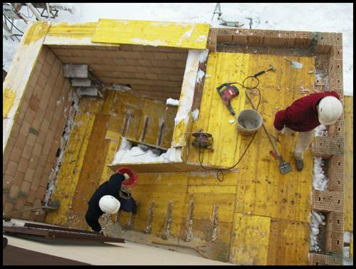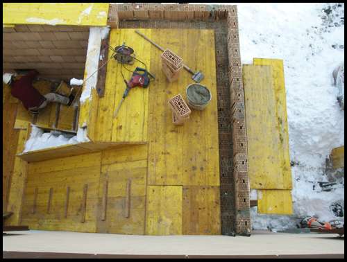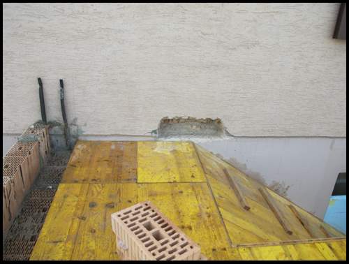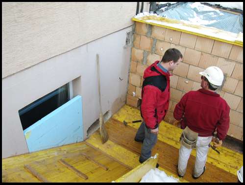 Und in der bestehenden Wand werden für beide Podeste Aussparungen für