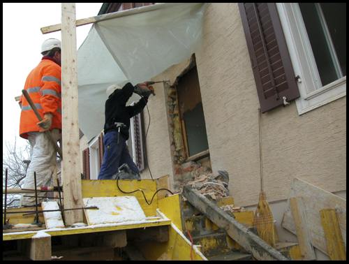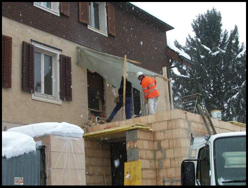 Die Decke über dem EG kann nun betreten werden und der Ausbruch für die neue