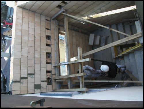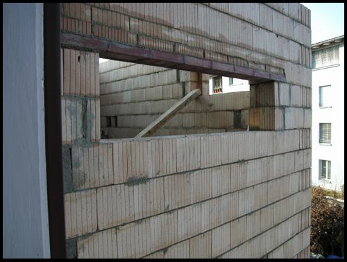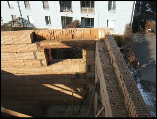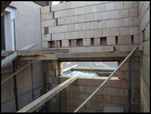 Die Auflagernischen für das Podest über 1.OG sind deutlich sichtbar: