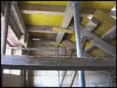 Die freigelegte Decke im bestehenden Wohnraum im 1.OG gibt den Blick frei auf