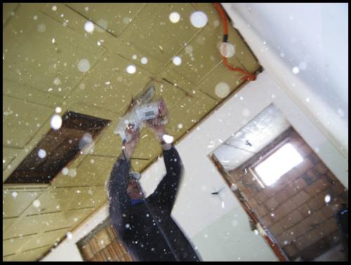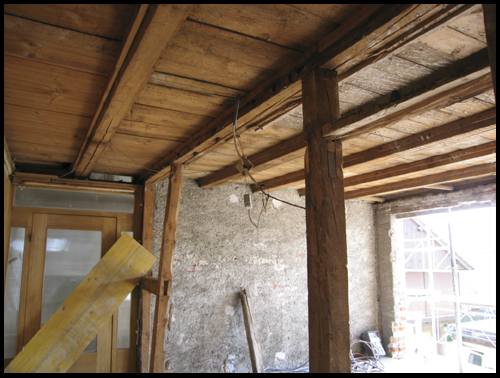 Zudem ist die Montage der neuen Decke auf den nun sichtbaren Balken