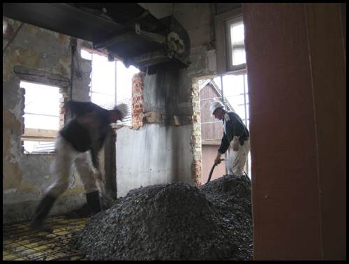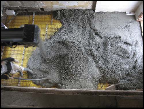 und schliesslich wird der Beton mit dem Förderband angeliefert: