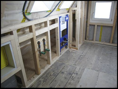 Bereits sind im DG-Bad die ersten Rohmontagen gemacht: