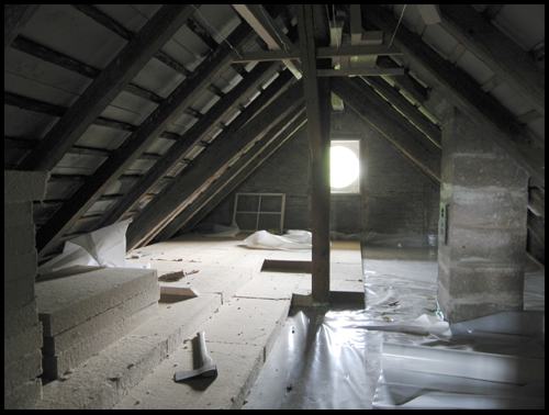 Im Estrichraum wird der Boden mit einer doppelten Lage Pavatex-