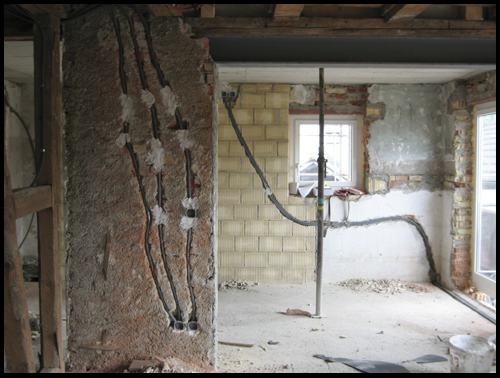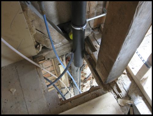 Nicht einfach ist die Führung des Fallstranges, da er ungünstig liegende alte