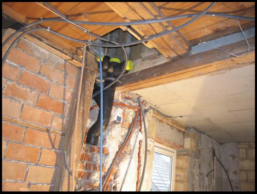Rohmontagen begonnen. An der Decke der Werkstatt im EG ein