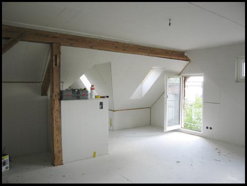verkleidete Mansardenwohnung. Hier ist alles bereit für den Endausbau: