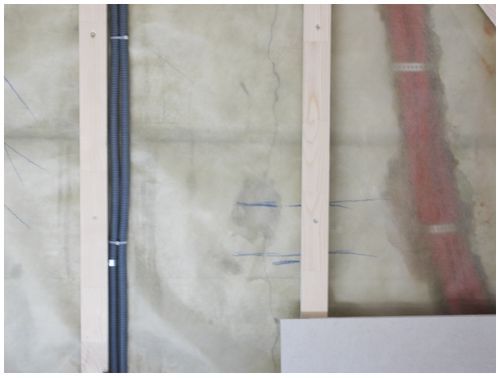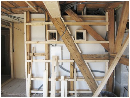 Im 2.OG sind die zwei Rahmen für die Glasbausteine in der Badezimmerwand