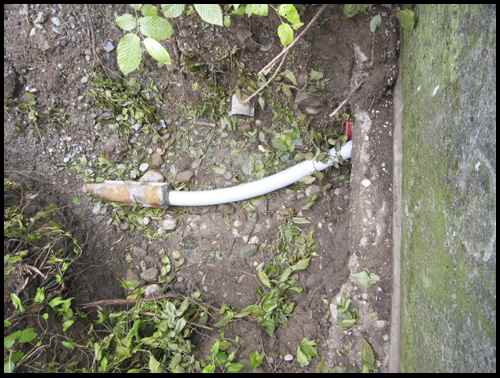 das alte Kabelrohr erkennbar, das zum Mast geführt hat: