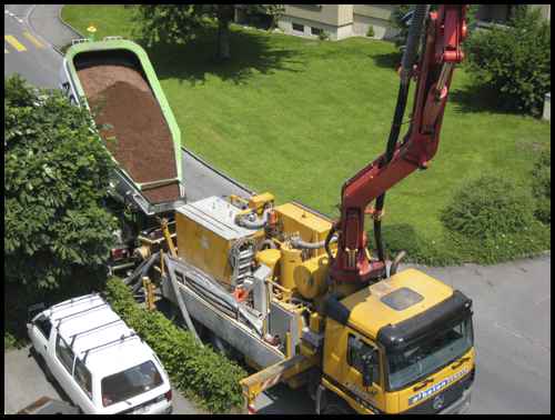 Heute wird das Substrat angeliefert, die Betonpumpe für die Förderung ist