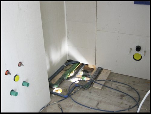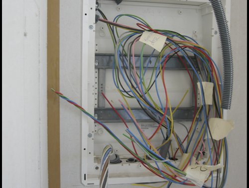 Auch der Elektriker hat hier oben die Rohmontagen beendet, die Drähte sind