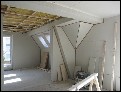 ..und im Wohnraum sind die Beplankungsarbeiten bald vollendet: