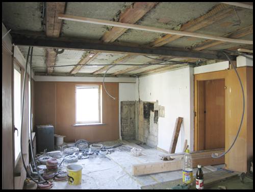 Auch in den Osträumen wird im 1.OG an der Decke gearbeitet: