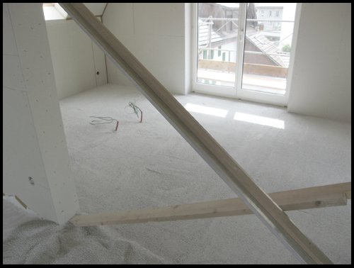 Im 2.OG wird derweilen mit der Ausgleichsschüttung des Bodens begonnen: