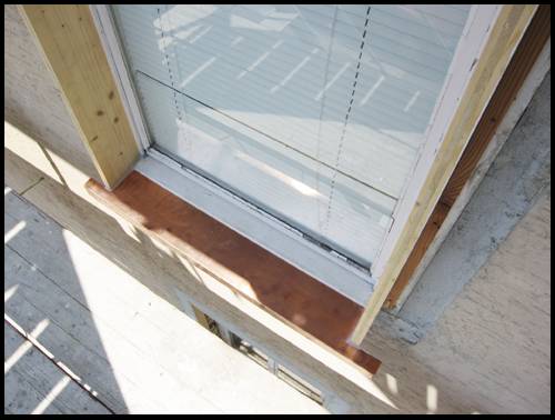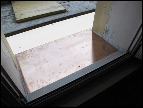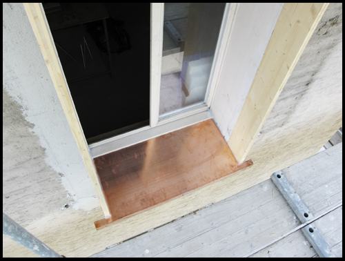 der Spengler hat auf die verbreiterten Fensterbänke ein Kupferblech