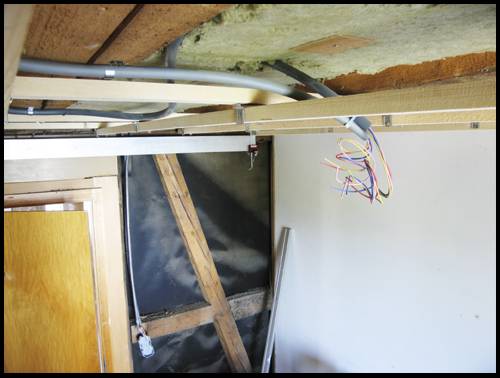 Im 1.OG ist in der Duschecke die Beplankung enfernt worden, damit die