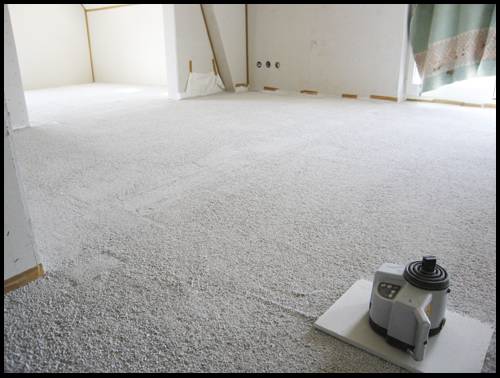 Im 2. OG ist die Fermacellbodenschüttung eingebracht worden. Im Vordergrund