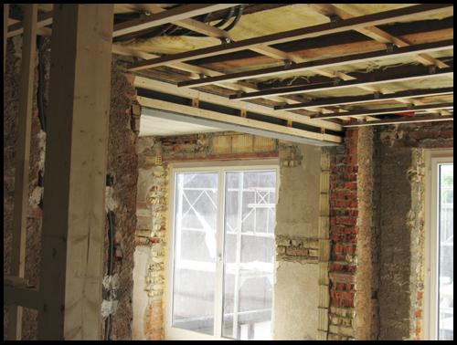 Im 1.OG ist alles vorbereitet für die Deckenverkleidung. Zuvor müssen