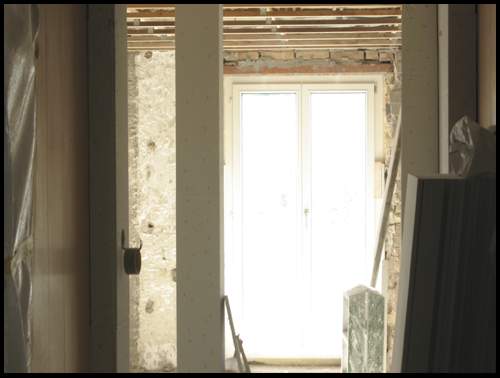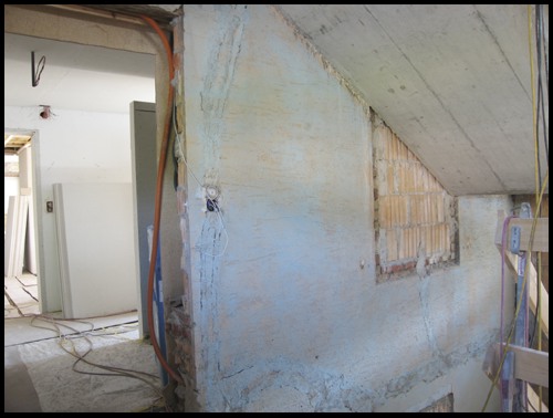 Im Treppenhaus ist auf dem alten Putz ein Haftgrund aufgebracht worden: