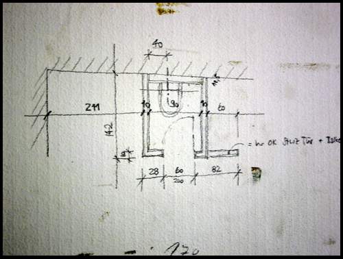 Entsprechend der Wandskizze ist im 1.OG das Separat-WC errichtet worden:
