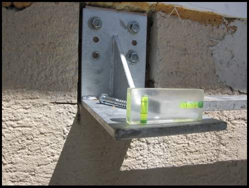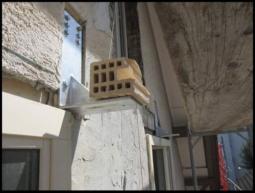 Aussen montiert der Zimmermann die Konsolen für die Balkonkonstruktion noch